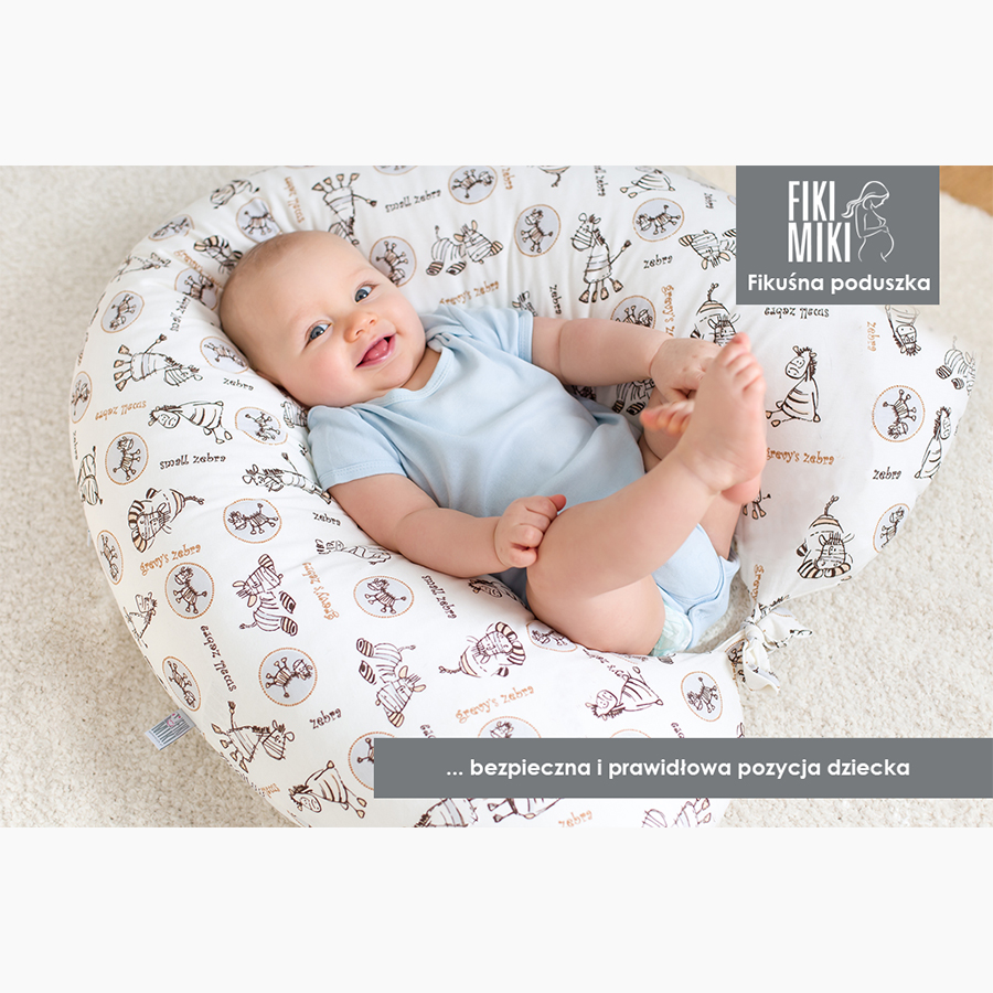 Dzięki dodatkowym sznurowadłom, za pomocą poduszki można również bezpiecznie i prawidłowo ułożyć małe dziecko. Dlatego też wyrób można zastosować w przypadku trudności w karmieniu i nieprawidłowym karmieniu.