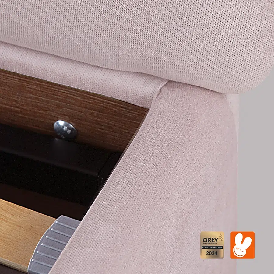 Tapicerowane, zaokrąglone krawędzie, odpowiednio grube (5 cm) i właściwie połączone elementy łóżka zapewniają niezwykły komfort i bezpieczeństwo.