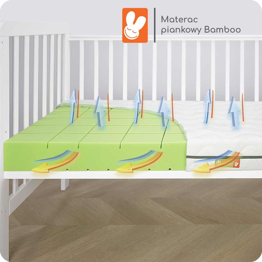 Materac Piankowy Bamboo (Numer katalogowy: MDM.2310-0) to dwustronny materac, przeznaczony dla dzieci, składający się z: