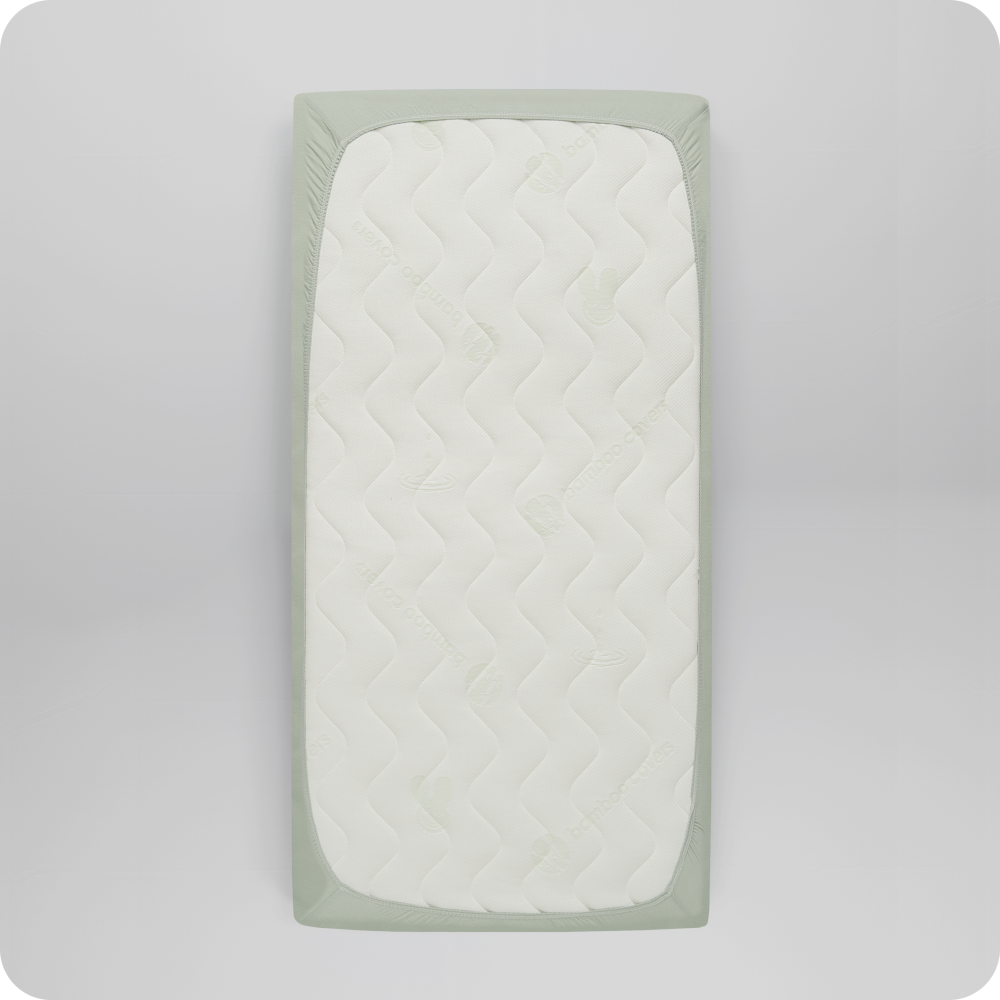 Przescieradlo BAMBUS zielony kostka z etykieta biale tlo 1000x1000 - Materac dla dziecka i niemowlaka Prześcieradło Bambusowe Zielon...